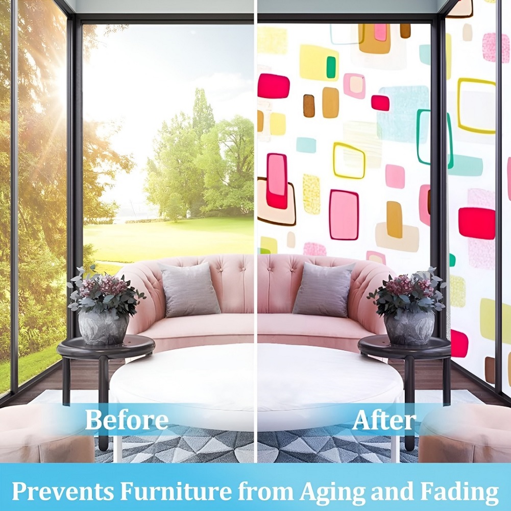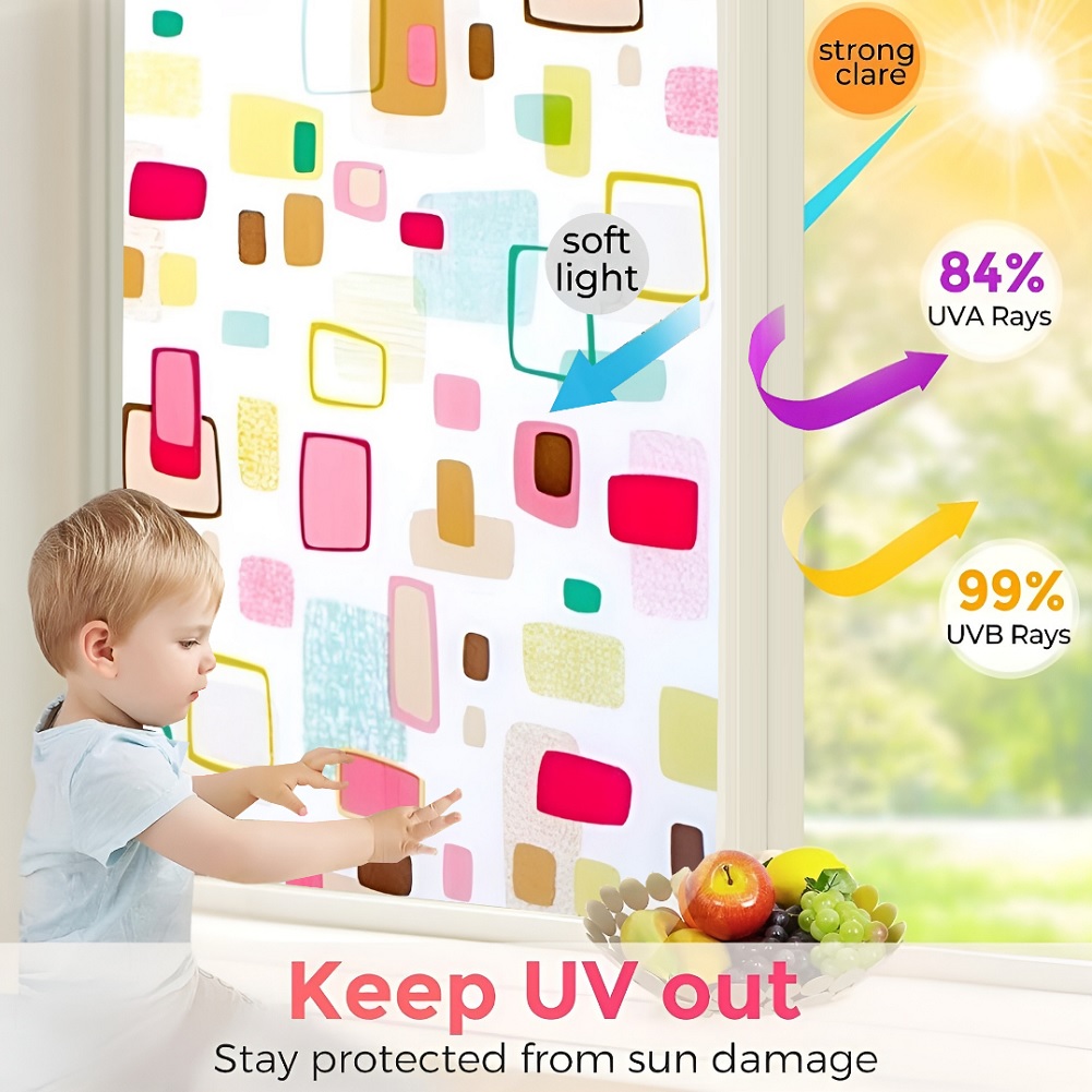 SUN BLOCKER & HEAT CONTROL: Window Film Is Made Of Thickened Material. The GlassFilm Can Block Up To 90% UV Rays, Clear the Air and Avoid Harm to Bodies. If You Need to Work at Home, It Can Keep Out the Bright Light and Excessive Heat Energy, And Keep Comfortable Light and Heat, So That the Window Sticker Can Bring You a Relaxed and Happy Mood.