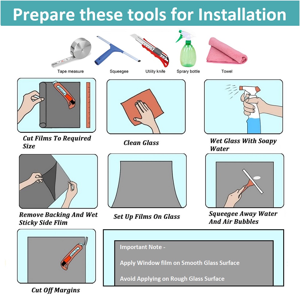 SUITABLE FOR ALL TYPE OF GLASS: This Window Film is suitable for Transparent Glass, Black Glass, Blue Glass, Multi Colour Glass, Dining Table Glass Etc …the List Goes on and on.