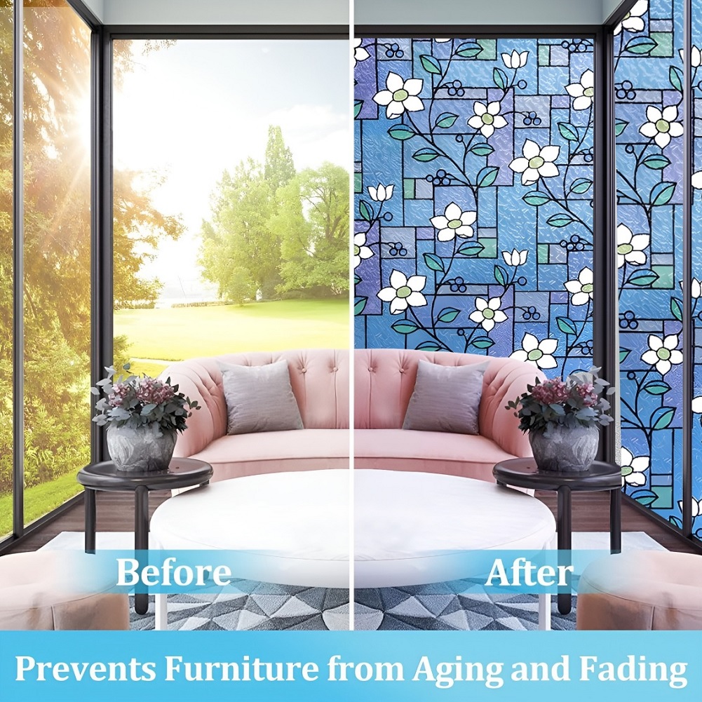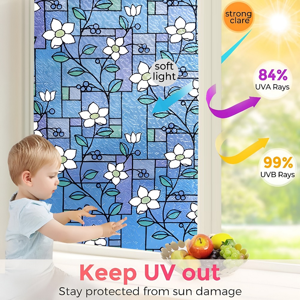 SUN BLOCKER & HEAT CONTROL: Window Film Is Made Of Thickened Material. The GlassFilm Can Block Up To 90% UV Rays, Clear the Air and Avoid Harm to Bodies. If You Need to Work at Home, It Can Keep Out the Bright Light and Excessive Heat Energy, And Keep Comfortable Light and Heat, So That the Window Sticker Can Bring You a Relaxed and Happy Mood.