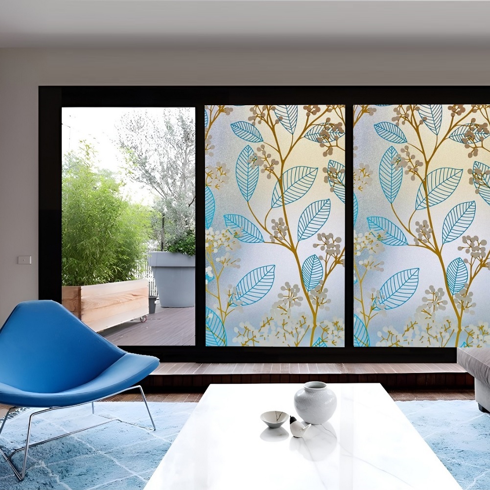 Blue Leaves Design Self Adhesive Window Film (Code – 5016)