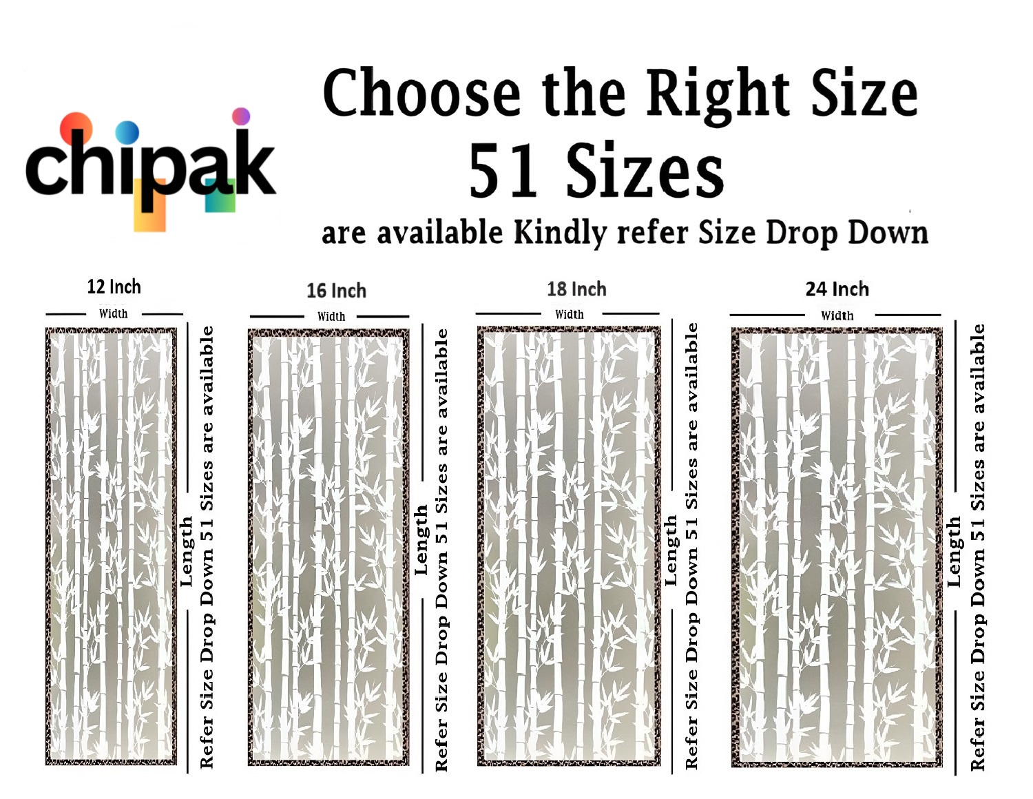 GLASS STICKER SIZE: 51 Sizes available in the drop down (in Inches) Choose perfect size for your window or Door, for example if your Glass size is 12 inches of width and 48 inches of Length then you should select 12×48 Inch and add quantity as per your requirement, You can also refer image number 2 for better understanding.