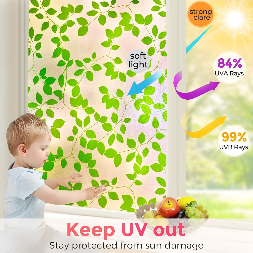 SUN BLOCKER & HEAT CONTROL: Window Film Is Made Of Thickened Material. The GlassFilm Can Block Up To 90% UV Rays, Clear the Air and Avoid Harm to Bodies. If You Need to Work at Home, It Can Keep Out the Bright Light and Excessive Heat Energy, And Keep Comfortable Light and Heat, So That the Window Sticker Can Bring You a Relaxed and Happy Mood.