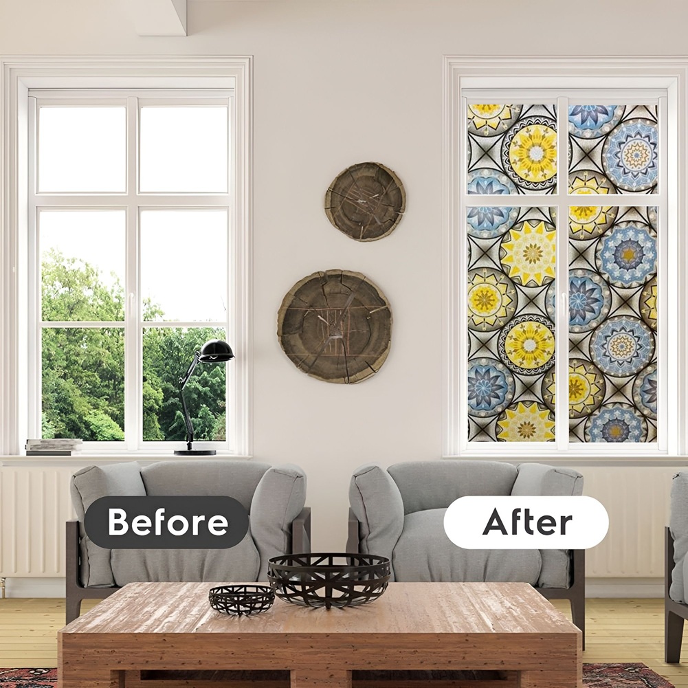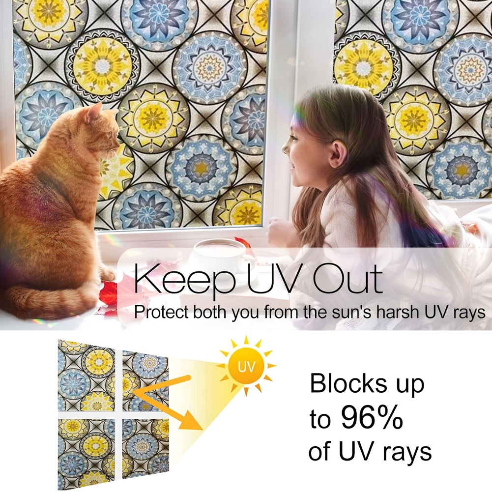 SUN BLOCKER & HEAT CONTROL: Window Film Is Made Of Thickened Material. The GlassFilm Can Block Up To 90% UV Rays, Clear the Air and Avoid Harm to Bodies. If You Need to Work at Home, It Can Keep Out the Bright Light and Excessive Heat Energy, And Keep Comfortable Light and Heat, So That the Window Sticker Can Bring You a Relaxed and Happy Mood.