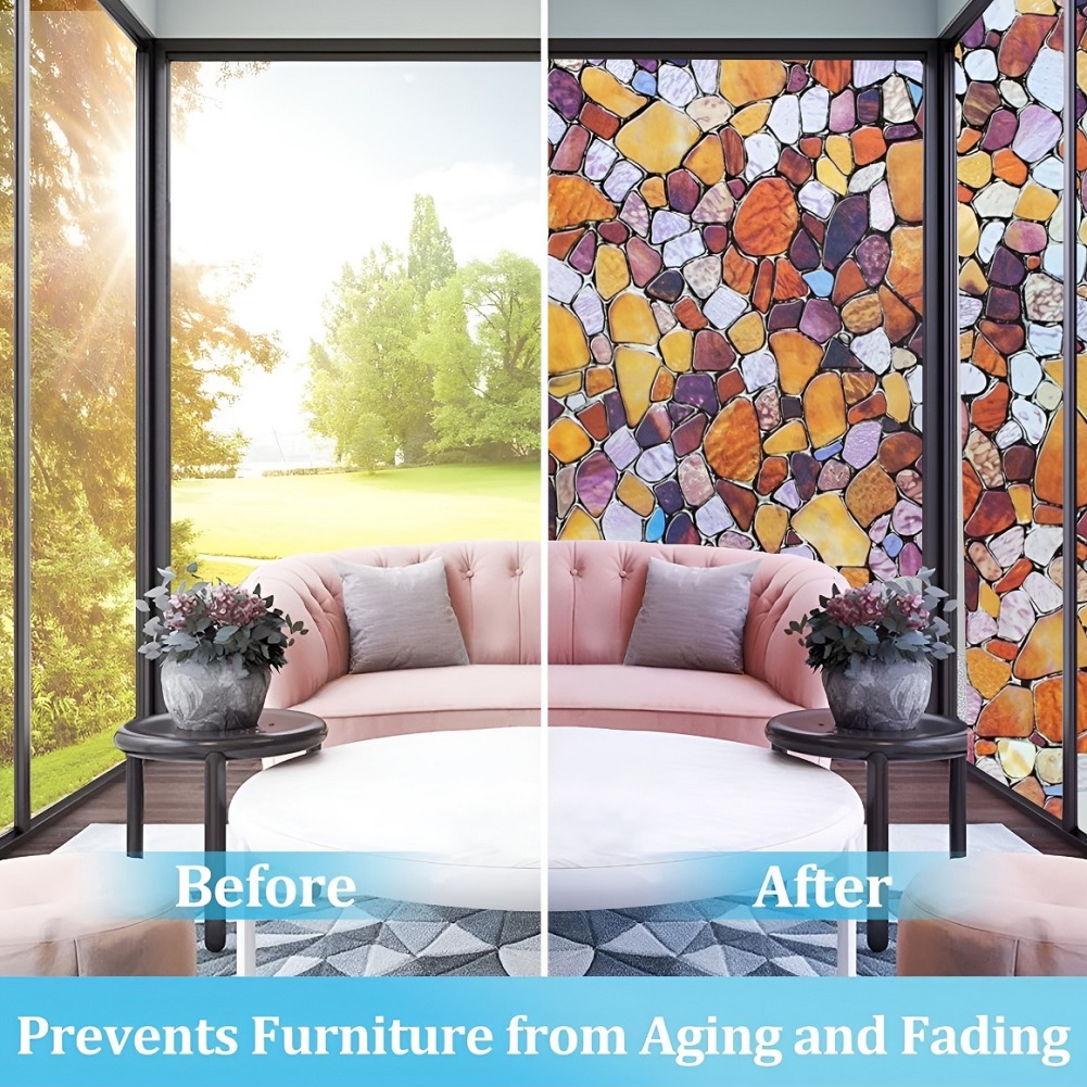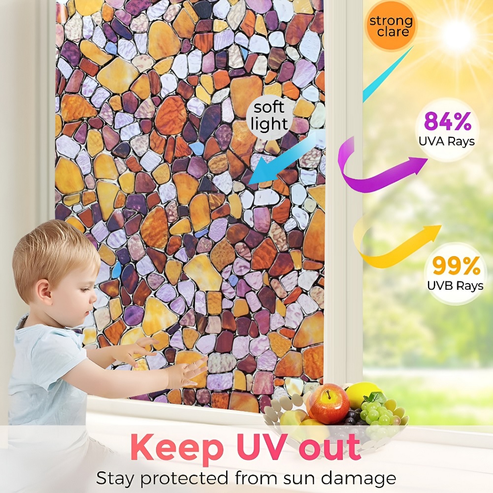 SUN BLOCKER & HEAT CONTROL: Window Film Is Made Of Thickened Material. The GlassFilm Can Block Up To 90% UV Rays, Clear the Air and Avoid Harm to Bodies. If You Need to Work at Home, It Can Keep Out the Bright Light and Excessive Heat Energy, And Keep Comfortable Light and Heat, So That the Window Sticker Can Bring You a Relaxed and Happy Mood.