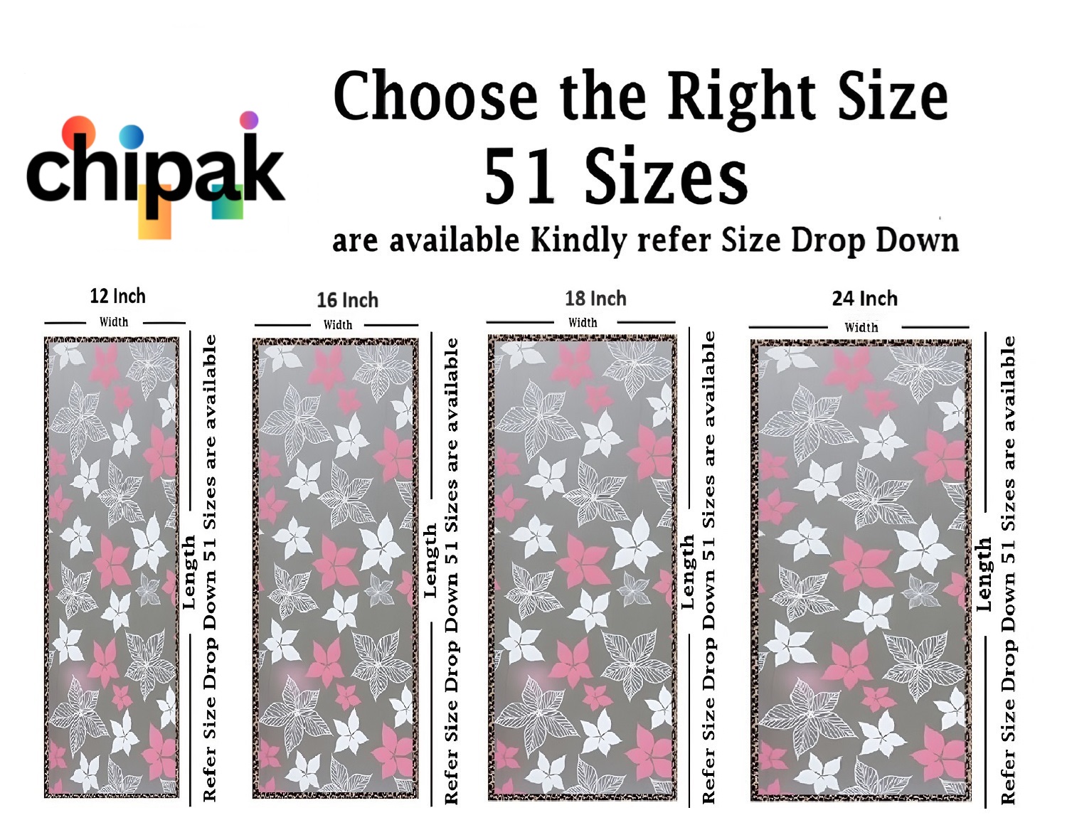 GLASS STICKER SIZE: 51 Sizes available in the drop down (in Inches) Choose perfect size for your window or Door, for example if your  Glass size is 12 inches of width and 48 inches of Length then you should select 12×48 Inch and add quantity as per your requirement, You can also refer image number 2 for better understanding.