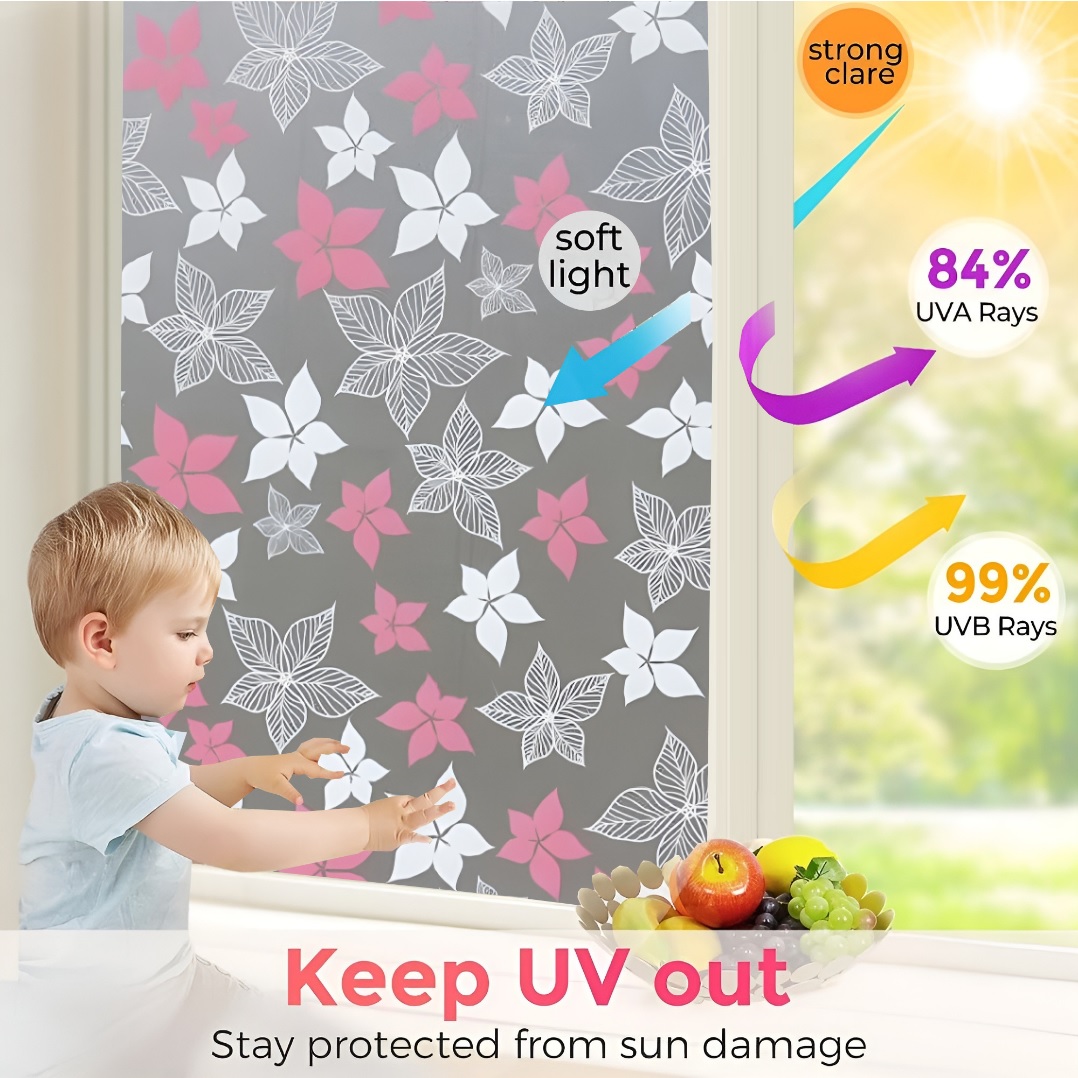 Beyond privacy, the frosted film helps block harmful UV rays, reducing  indoor heat and glare. Plus, the elegant frosted design adds a modern touch to any window, door, or glass panel.
