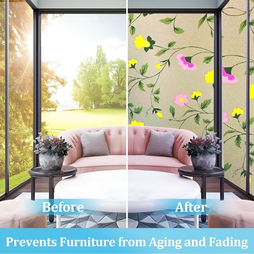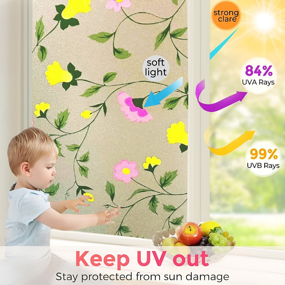 SUN BLOCKER & HEAT CONTROL: Window Film Is Made Of Thickened Material. The GlassFilm Can Block Up To 90% UV Rays, Clear the Air and Avoid Harm to Bodies. If You Need to Work at Home, It Can Keep Out the Bright Light and Excessive Heat Energy, And Keep Comfortable Light and Heat, So That the Window Sticker Can Bring You a Relaxed and Happy Mood.